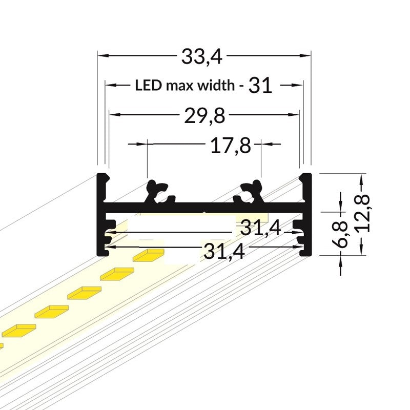 Lišta KM71-S 2M, 40710002, stříbrná hliníková, určená pro povrchovou montáž